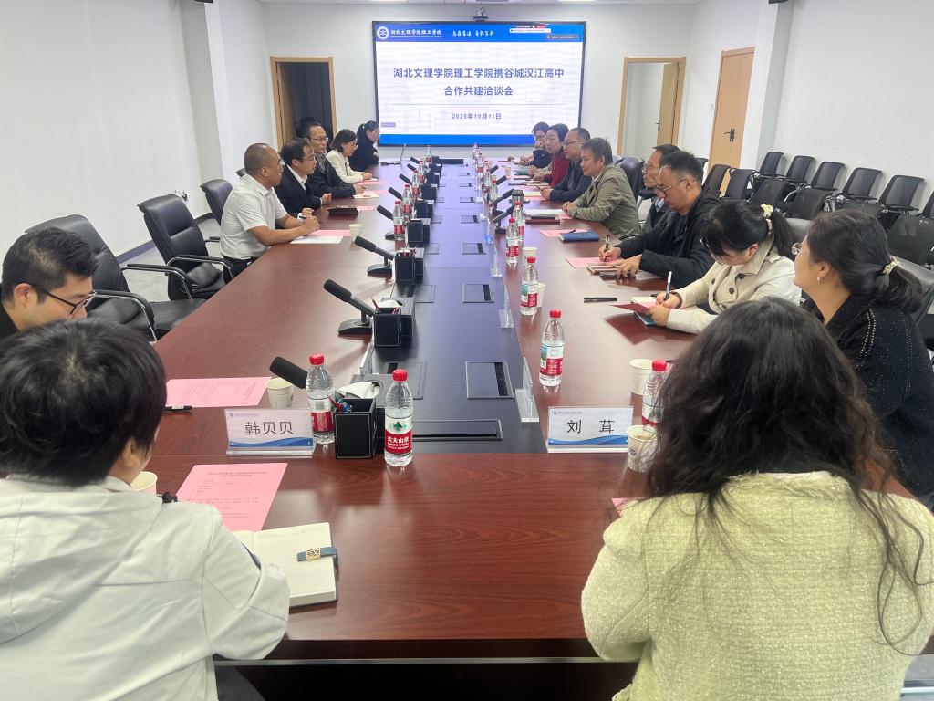 (招生就业部 王刚)10月11日上午,我校与谷城汉江高中合作共建洽谈会在图书馆722会议室举行。会议由招生就业部部长胡阳主持,副校长汪波、教学科研部部长刘铁、发展规划部部长王寅龙、试点专业学院党政负责人及专业课教师,与汉江高中党支部书记石习奎、校长王维松一行共同出席了会议,双方就深化校校合作、共育优秀人才进行了深入交流,并展望了国际化联合培养的新路径。