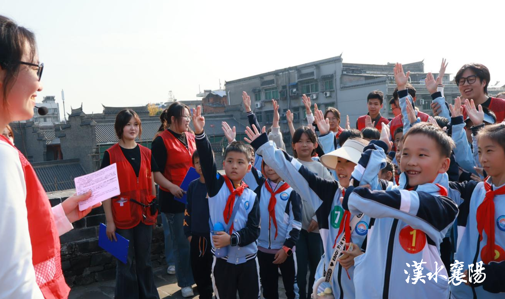 活动从临汉门启程,大学生志愿者们与小学生以小组为单位,组成了一支朝气蓬勃的“走襄水”队伍,“大手”坚定地拉起“小手”,一起用脚步丈量襄阳古城。沿着巍峨的城墙缓步前行,志愿者化身“历史故事家”,用生动有趣的语言,为孩子们讲述着一砖一瓦背后的故事,拥有2800多年历史的沉默古城在志愿者的讲述中生动起来,伴随着一个个脚印、一段段讲述,大家的城市认同感、家乡自豪感不断高涨。