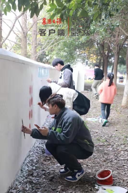 12月12日,来自湖北文理学院理工学院的十多名师生组成墙绘小分队,紧密围绕党的十九大强调的自治、法治、德治“三治融合”内容,以小区围墙为画布,大展身手。