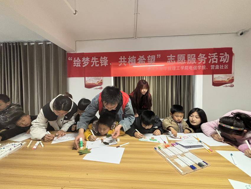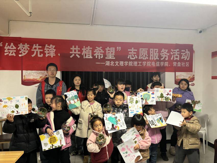 湖北日报客户端(通讯员肖乃傲)3月10日,在植树节来临之际,湖北文理学院理工学院电信学院组织大学生志愿者到襄城区营盘社区,在社区招募6-12岁小学生开展以“绘梦先锋,共植希望”为主题的绿色环保志愿活动。