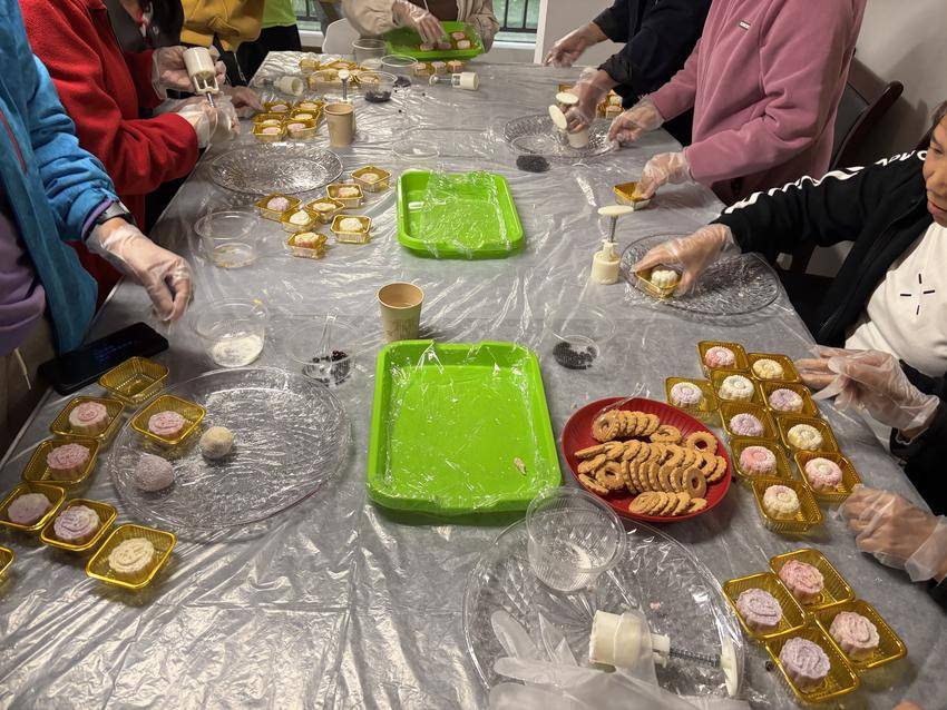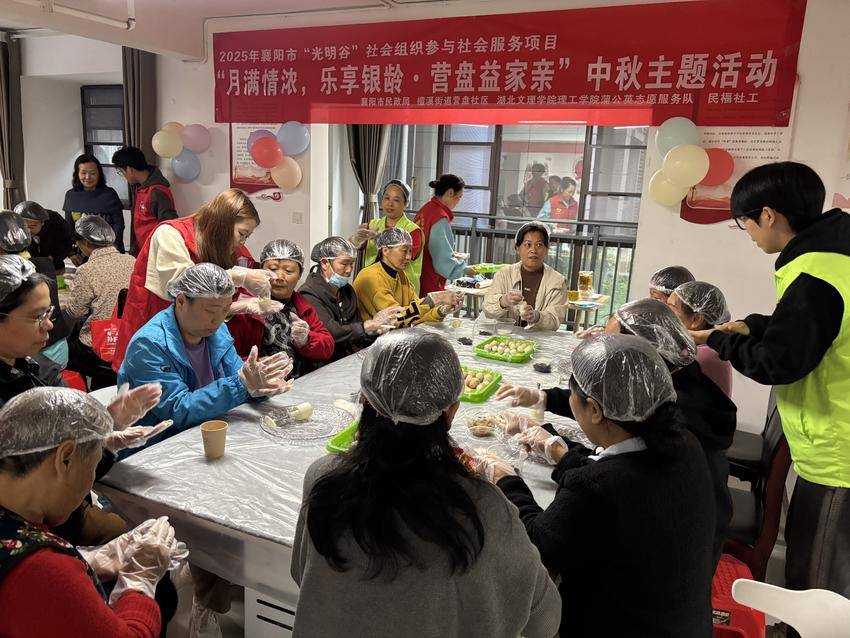 湖北日报客户端讯(通讯员潘堃)9月26日下午,在营盘社区金色营盘党群服务站内,20余位居民围坐长桌,在湖北文理学院理工学院蒲公英志愿服务队和民福社工指导下将传统中秋美食玩出新创意。这场以“月满情浓,乐享银龄”为主题的手工山药月饼制作活动,既是舌尖上的文化传承,更为老龄群体搭建了情感联结的暖心平台。