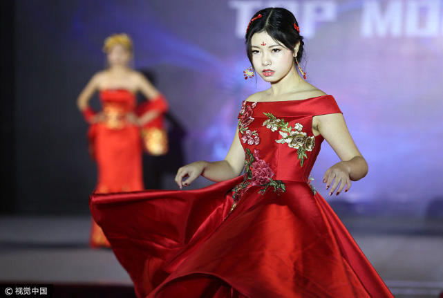 2017年11月22日,湖北省襄阳市,大学生模特展示湖北文理学院理工学院学生设计的服装作品。图片来源:杨东/视觉中国