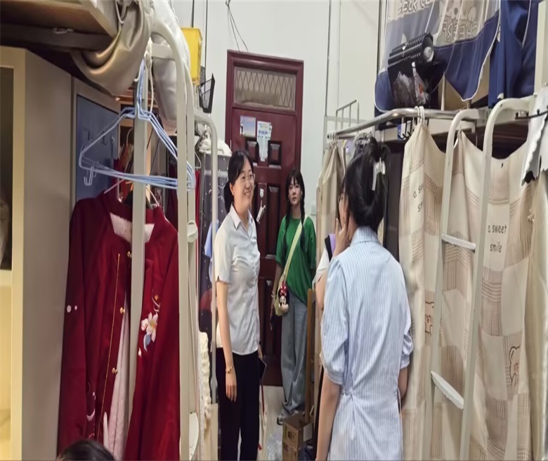 (经管学院 谢鑫海)6月13日晚,在2025届毕业生离校前夕,经济与管理学院党总支书记王春柳带领所有毕业生辅导员深入学生宿舍,走访慰问即将离校的毕业生,了解他们的离校准备情况,并送上暖心祝福。