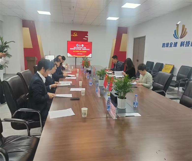 (经管学院 李林芝)9月28日下午,我校跨境电商产业学院第一届理事会会议在襄阳自贸片区跨境电商产业园召开,主题为“共商产业学院发展,共绘产教发展蓝图”。襄阳市跨境电商协会会长曾文燕、我校经济与管理学院副院长朱靖、襄阳自贸区跨境电商运营管理有限公司总经理金胜勇、襄阳佰新职业技能培训学校校长曾荣玲、我校跨境电子商务专业负责人姚丹及七名专业教师参会。