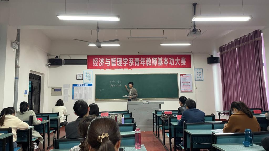 (经管系 安慰)为深入贯彻教育部“以赛促教、以赛促学,以赛促改、以赛促建”的工作精神,全面提升我系青年教师教学能力、教学水平和创新能力,引领青年教师树立远大理想,听党话、跟党走,担当时代责任,练就过硬本领,锤炼师德修为和教学基本功,3月29日下午,经管系在4教305教室举办经济与管理学系2022年青年教师基本功大赛。本次比赛邀请了湖北文理学院理工学院常务副院长耿帮才教授、教学质量评估中心主任张治国教授、学院督导刘学林教授、特聘教授湖北文理学院经管学院副院长王芬教授和湖北文理学院经管学院卢君生教授担任此次大赛的评委。