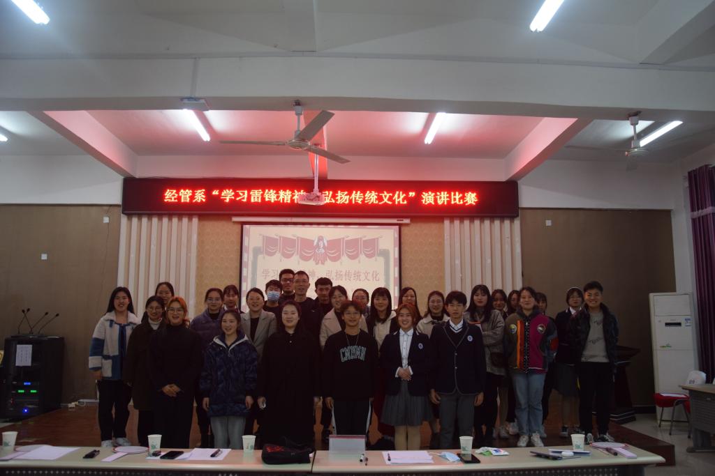 3月18号下午,经管系“学习雷锋精神,弘扬优良传统”演讲比赛于一教104会议室圆满结束。经管系副主任刘铁、经管系党总支副书记王春柳、经管系副主任朱靖、各班班主任及各年级辅导员出席此次比赛。
