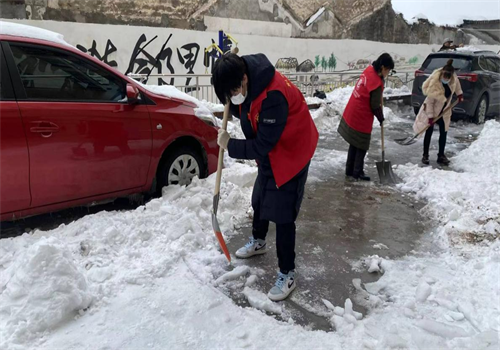 受大雪天气影响,道路结冰,法学2211班张思杰、法学2111班卢漫伊和智管2322班项雨鹏同学第一时间参与到当地铲冰除雪活动,为车辆人员出行提供了安全保障。