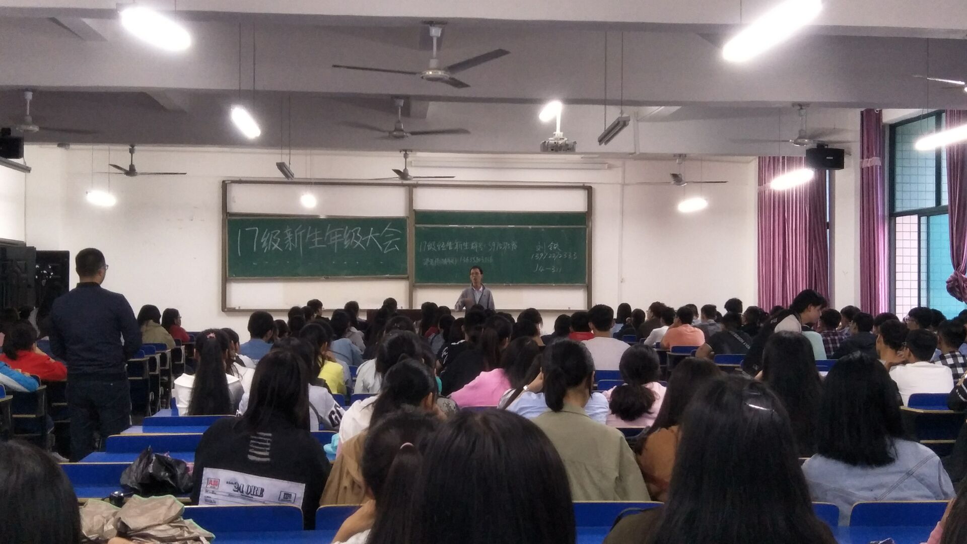 首先,刘主任为同学们介绍了经管系各个专业的大致情况并对同学们表示了热烈的欢迎。其次,邵俊 华老师慷慨陈词,他表示新生的到来给我们学校和我们经管系带来了新鲜血液。接着,邵俊华老师为大家介绍了我们学校的具体事项,并强调了开学应该注意的问题和禁止事项及新生接下来的工作和安排。他还强调大学生应该在大学生活里规划好自己的学习休息和运动时间,积极参加社团合理充实好自己的大学生活。最后,刘铁主任宣布经管系2017级新生年级大会圆满落幕。