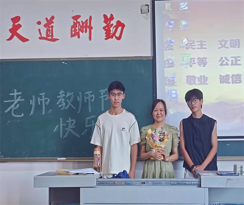 教师节当天,教室黑板上写下了同学们对老师的感恩祝福,上课前全体学生向教师送祝福语,并由学生代表将一束束饱含情意的鲜花和祝福卡片赠送到老师们手中,老师们接过鲜花和祝福卡,脸上洋溢着幸福的笑容,纷纷表示此次活动让他们感受到了同学们的敬爱,同时也激励着自己以更高的热情和更坚定的信念投身教育事业。同时,学院党总支书记王春柳带领学生向学校领导赠送节日祝福和鲜花,对一直关心学生成长的校领导表达感恩之情。