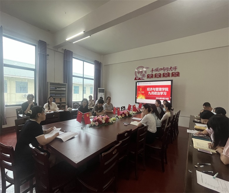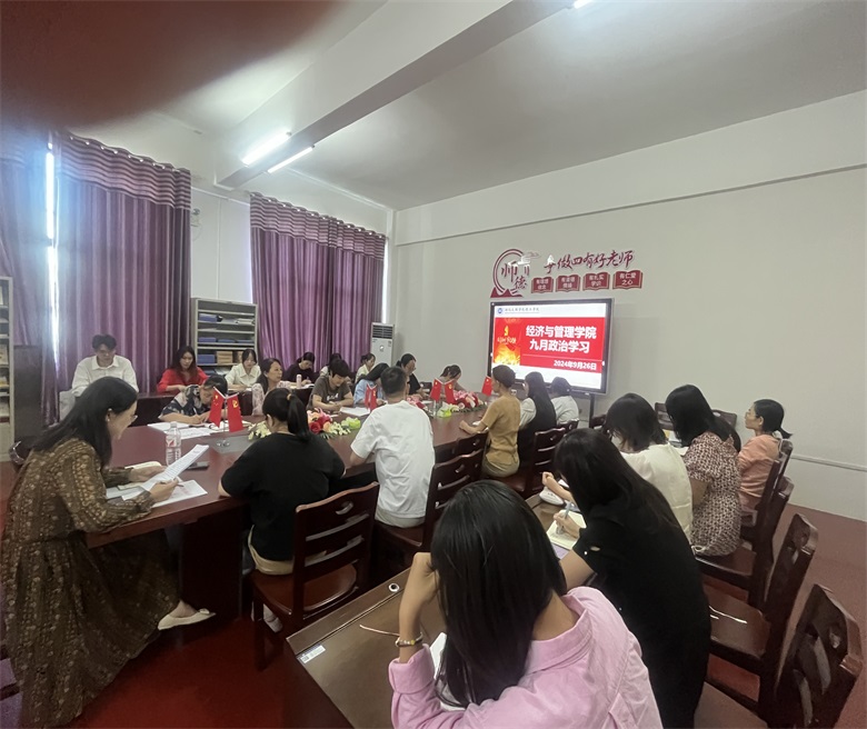 (经管学院 周晓桥)为落实政治理论学习制度,凝聚教职工团队向心力和凝聚力,提高教职工政治理论素养,9月19日和9月26日下午,经济与管理学院在4教309会议室开展九月教职工政治理论学习,全体教职工参会。