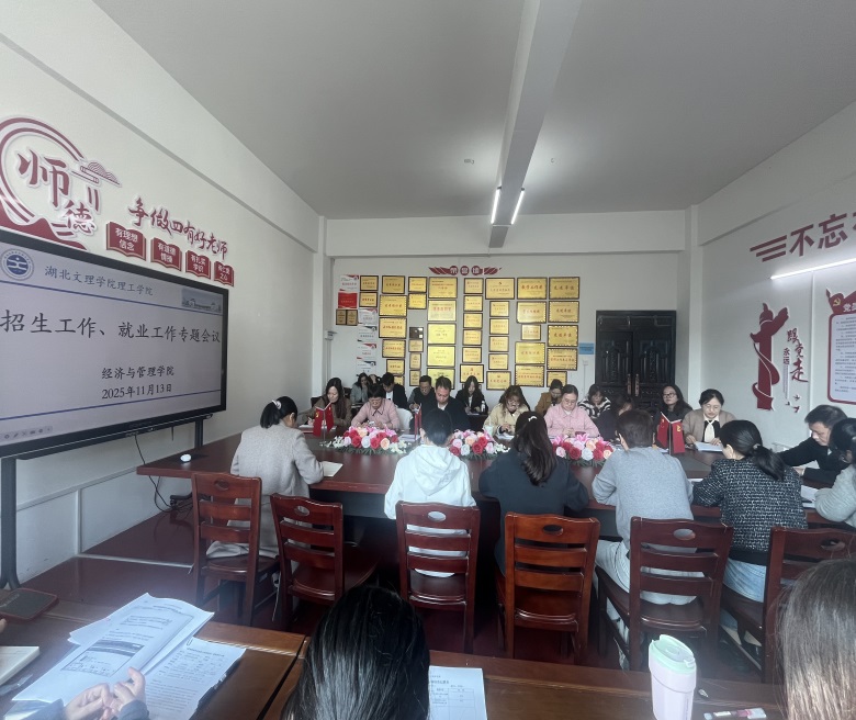 (经管学院 周晓桥)11月13日下午,副校长汪波深入经济与管理学院开展招生就业工作专题会议,会议由学院党总支书记王春柳主持,全体教职工参会。