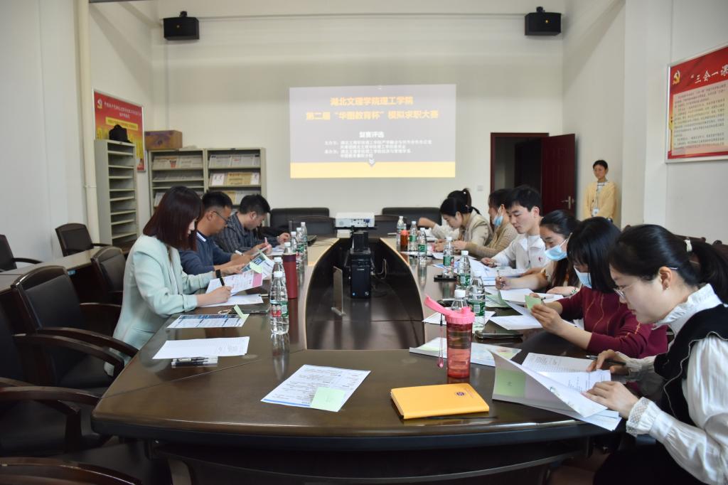 (经管系 徐凡)4月22日上午,第二届“华图教育杯”模拟求职大赛复赛评选工作在大学生活动中心党员活动室进行,副院长汪波、产学融合中心副主任王寅龙、校团委副书记桂梦怡、华图教育襄阳市场部经理吴啸怡及各系分团委书记出席会议,参与评选工作。