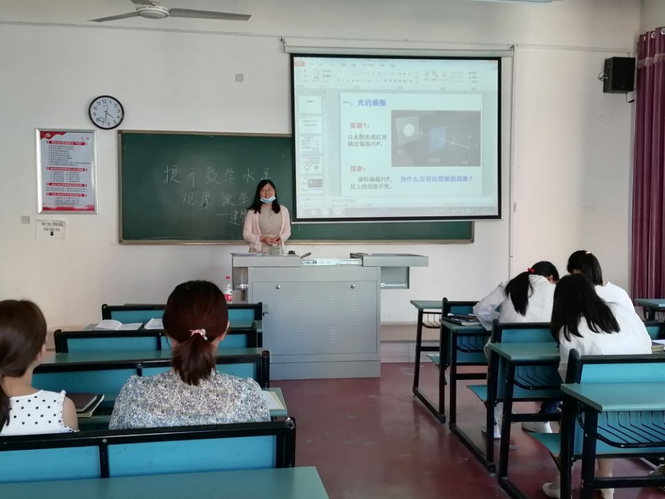宁珍珍首先给老师们上了一堂生动的观摩课,上课中,她使用了各种教具,结合3D电影眼镜、魔术师表演等实例生动形象地讲解了偏振片的原理,让老师们对上课又有了新的认识,学到了新的技能。随后,宁老师讲解了竞赛与上课的不同之处,以及备战比赛的艰辛历程。