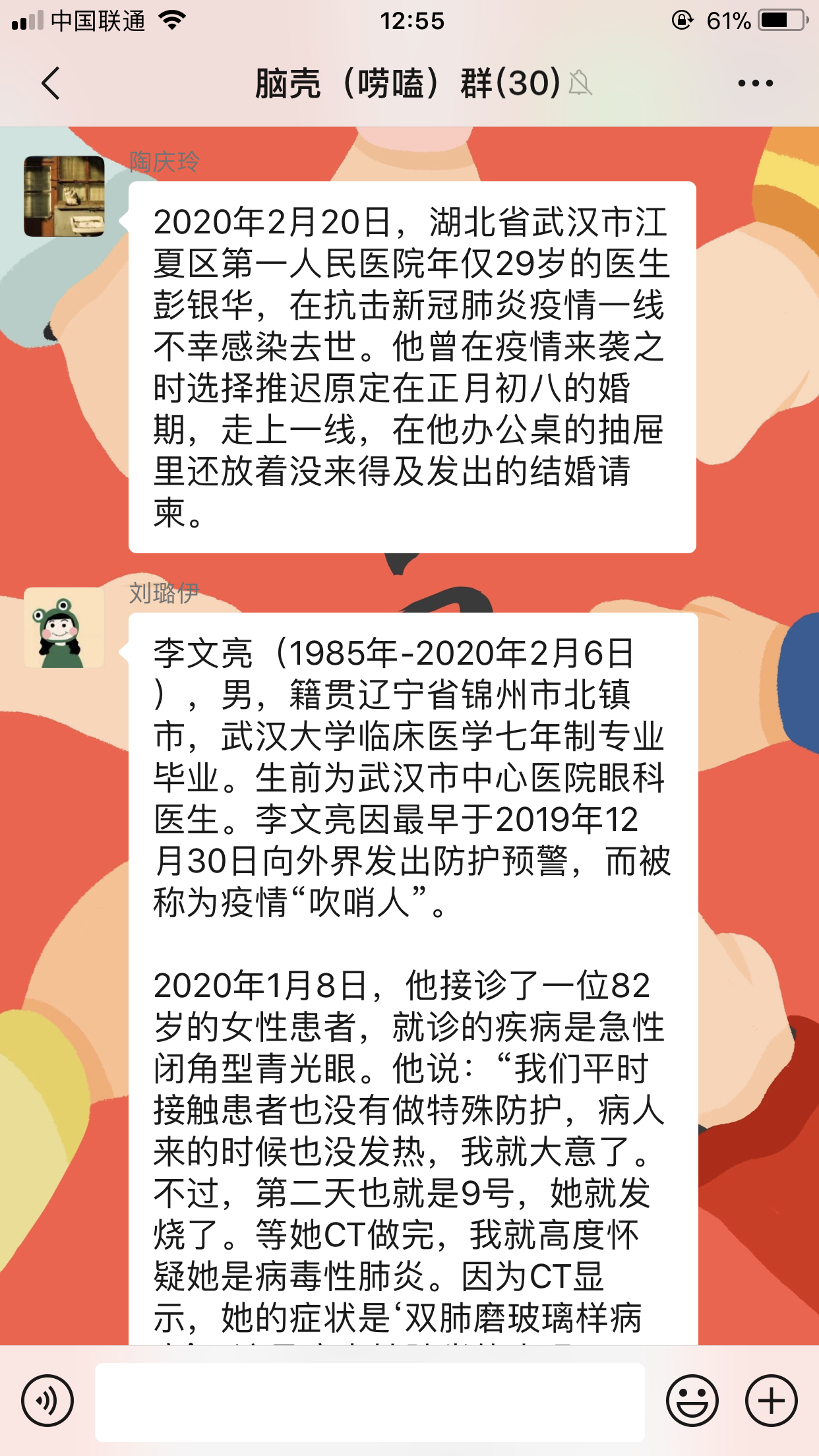 “我们学生是祖国的未来和希望,要时刻牢记我们的人生价值和理想追求与中国的前途命运是紧密联系在一起的,要有高度的责任感和主人翁意识。在工作生活中遇到问题、发现错误的时候,既不能有“位微言轻”的自卑感觉,更不能有“事不关己”的漠然态度,要拿出青年人应有的正义感,发挥青年人思维活跃的优势,敢于指出问题、善于想出办法。只要是对社会发展有益的事情,就要勇于尝试、敢于担当,在本次疫情中,我们很多学生都很负责任的自我隔离与当志愿者,其中医学院的很多学生的表现够我们当作楷模与典范,这就是我们这代人的担当。”---------团员王磊说。