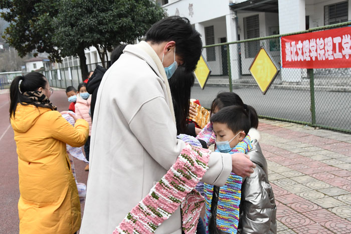 来自我校的学生们为小学生带来了歌曲、相声等文艺表演,同时由建工系学生党员为小学生送去了亲手织成的围巾,让他们在寒冷的冬天感受到社会的温暖,并鼓励他们好好学习,用优异的成绩来汇报社会。