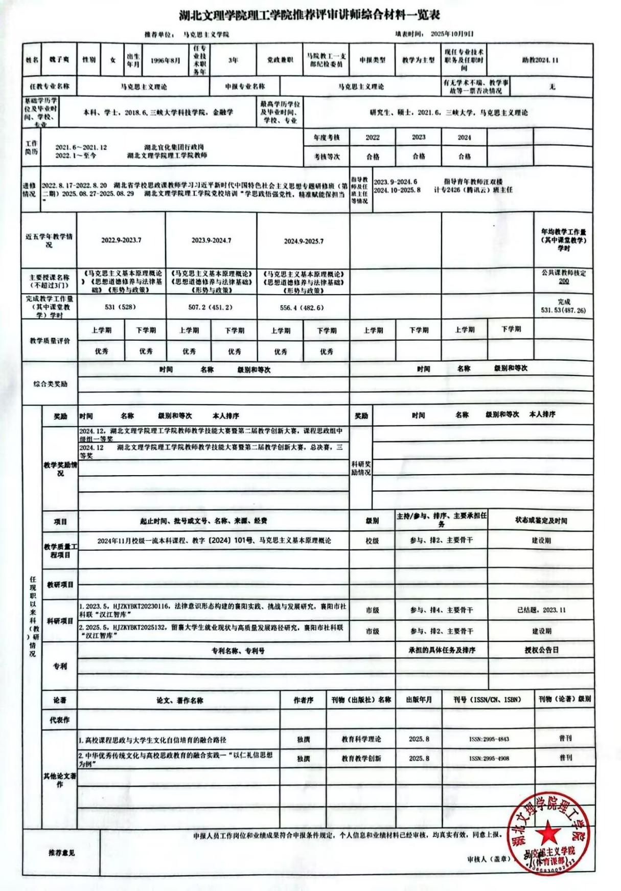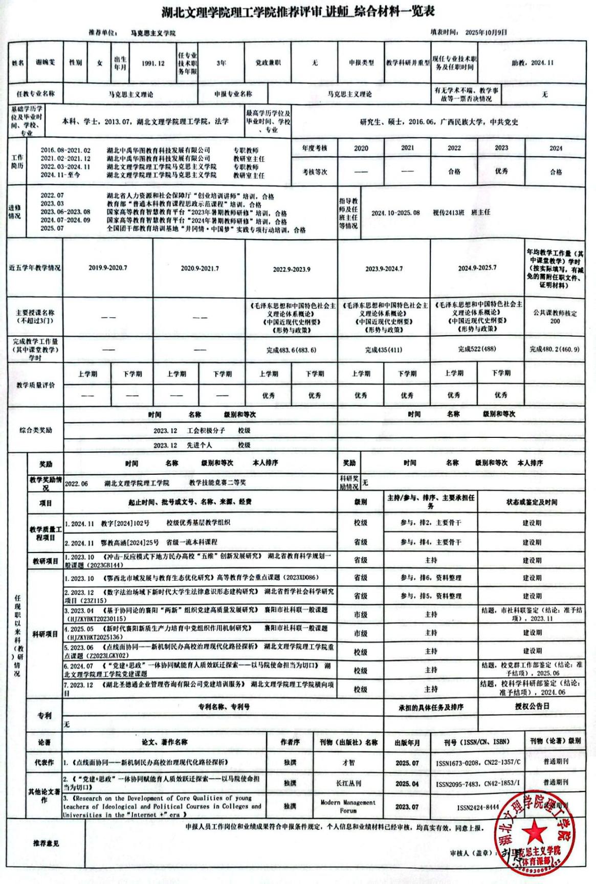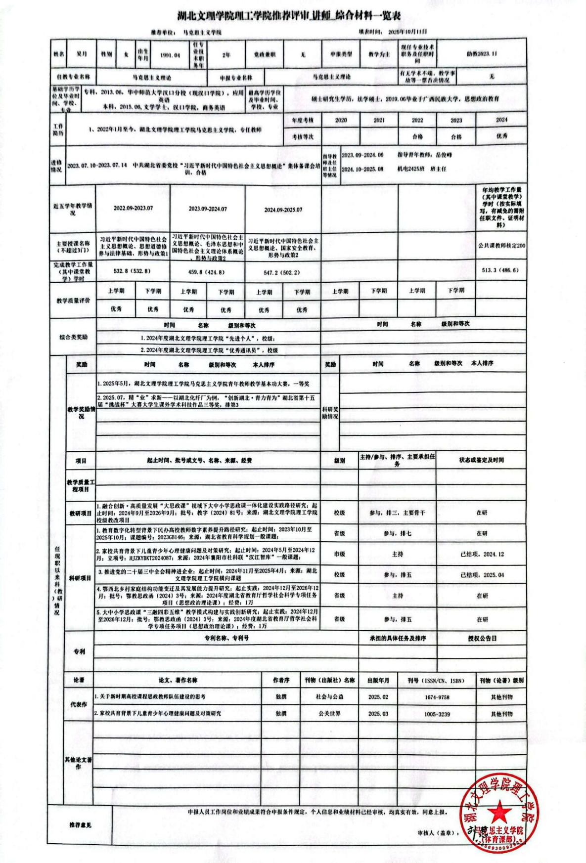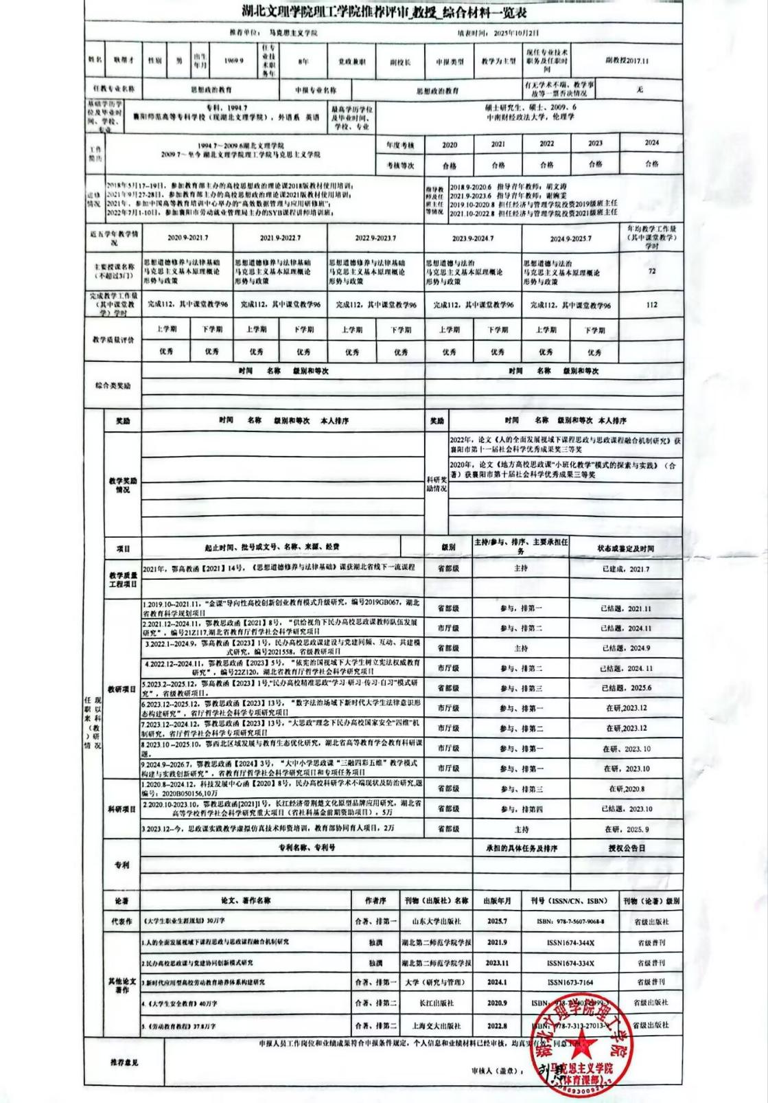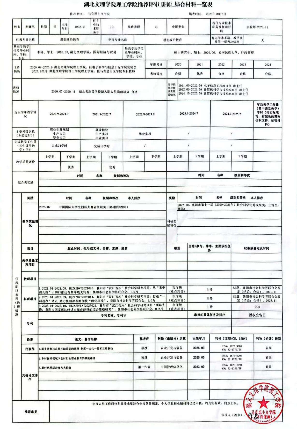 根据湖北文理学院理工学院《关于开展2025年度教师和实验技术系列专业技术职务任职资格评审工作的通知》(院政发综〔2025〕181号)要求,经个人申报、申报人所在单位审核,目前本年度参评人员达7人,其中高校教师系列7人,具体情况公示如下: