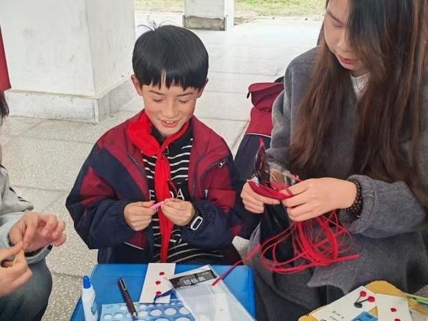 在“数字抱圈”游戏中,孩子们在欢快的音乐中彼此协作、传递善意,真切感受集体互助的温暖。在随后的衍纸书签制作环节,大学生社团成员手把手指导小学生们运用卷、捏、拼贴等传统衍纸技艺,将一朵朵鲜艳的花朵以及“学习雷锋”、“乐于助人”等字样,精心制作成一枚枚独具匠心的主题书签。