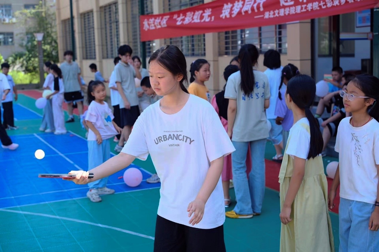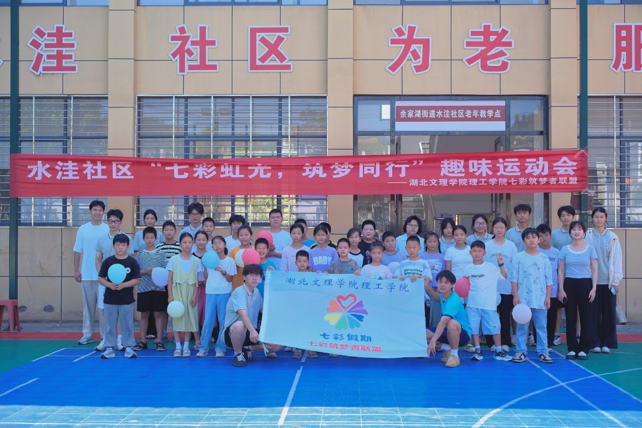 (通讯员:万小月、杨宇航、杨孟爽、丁胜坤)7月4日上午,襄阳市襄城区水洼社区广场充满欢声笑语。湖北文理学院理工学院“七彩筑梦者联盟”暑期社会实践队在此举办“七彩虹光,筑梦同行”趣味运动会,为社区儿童带来活力假期。