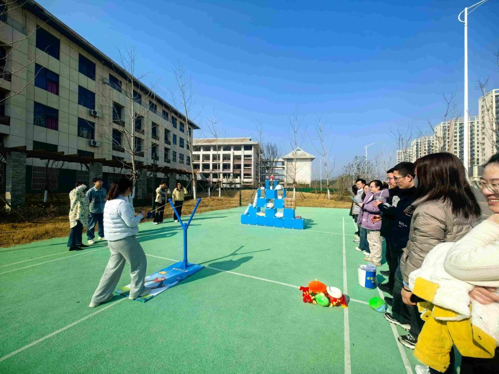 在学院书记李颖详细介绍游戏规则后,活动正式拉开帷幕。老师们化身“神投手”,专注瞄准、奋力掷出。有人出手精准,击中高难度目标,赢得满堂喝彩;也有人讲究策略,逐步积累,稳中求胜。每当有老师投中目标,周围便响起一片鼓励的掌声;即便偶有“失手”,大家也报以善意的笑声和安慰。在一次次投掷与交流中,日常工作的疲惫似乎也随之掷出、消散。