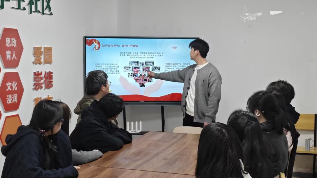 分享中,马景涛同学围绕“甘做一颗永不生锈的螺丝钉”这一精神内核展开讲述,以“大国工匠”故事为引,帮助成员们理解责任、坚守与奉献的意义。他表示,雷锋精神不仅体现在帮助他人、服务社会上,也体现在对本职任务的认真对待和对初心使命的始终坚守。