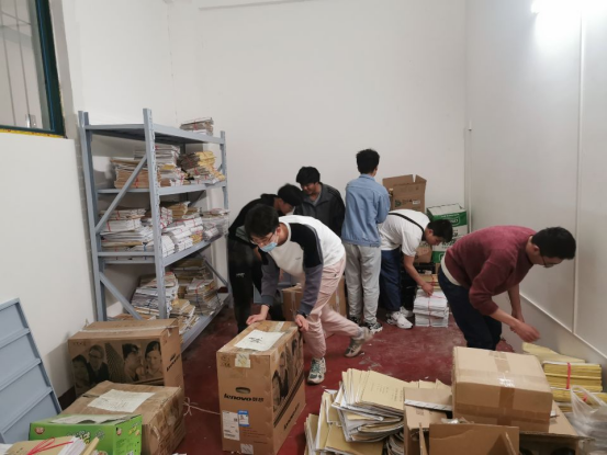 教学副主任王献合讲解完注意事项及归档要求后,教学秘书、实验员及6名学生志愿者开始档案归档整理工作,大家齐心协力,有序地对近几年电信系的各类文件进行分类、上架、排序。