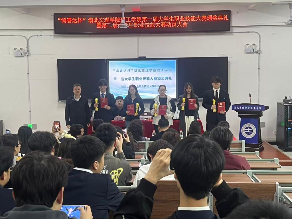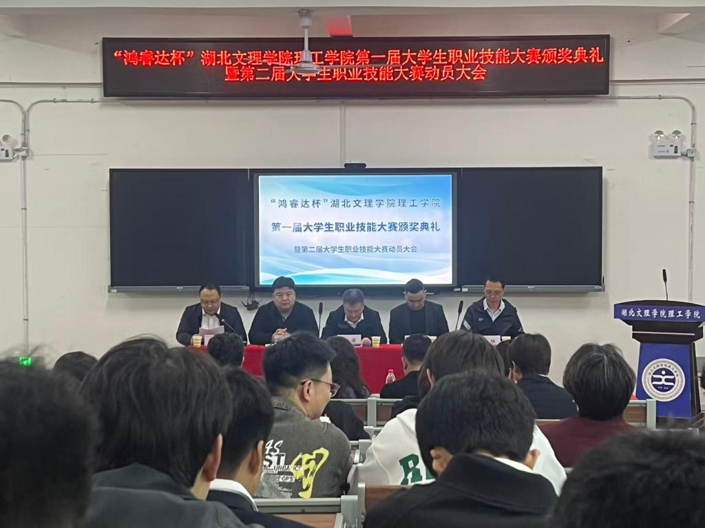 会上,刘铁宣读了《关于“鸿睿达杯”湖北文理学院理工学院第一届职业技能大赛获奖名单的通知》,本次大赛自2025年11月启动,历时2个多月,共设置养老护理、建筑工程测量、AUTOCAD等17个赛道,涵盖31个专业,吸引全校1127名同学报名参赛。经过初赛、决赛的激烈角逐,最终70名同学和团队脱颖而出。