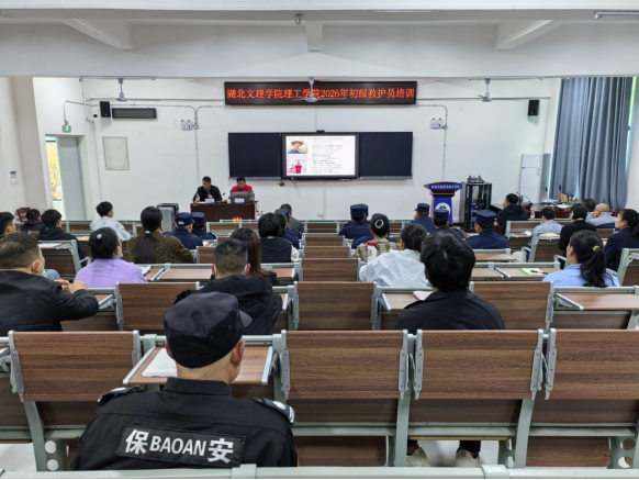 (后勤服务部 徐晴)为深入推进平安校园建设,全面提升校园应急救护专业化水平,切实筑牢师生生命安全防线,4月11日,学校开展2026年初级救护员培训。本次培训特邀襄阳市红十字会应急救援专家张文军主讲。后勤服务部管理人员、宿管、楼管、保安、学生代表共计70余人参加培训。