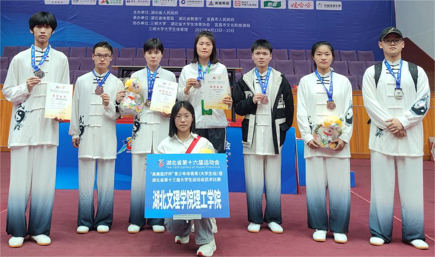 (公共课部与文法系 刘君涵)4月13日至15日,2023年湖北省第十六届运动会青少年体育类(大学生组)暨湖北省第十三届大学生运动会武术比赛在三峡大学举行,我校武术队由体育教研室主任韩聪带队,体育教师未玲玲担任教练前往参赛。