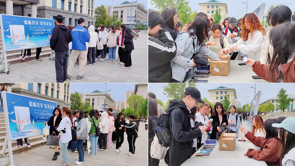 第三阶段是在校园内面向全校师生开展“资源共享,以书交友”活动。参与者之间进行自有书籍交换,并可参与抽奖获得图书馆定制礼品。本次活动以书籍作为桥梁,闲置资源互换,在书中认识新朋友,带动更多的同学养成良好的阅读习惯,激发同学们的阅读热情。