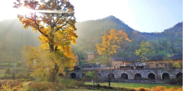 整个村落中,不仅有一棵棵古老的银杏树点缀着房前屋后和山边田间,而且大大小小的银杏树共同构成一条绚丽的银杏林,每到深秋,这些树演变出黄、红、绿等不同颜色的叶子,相互映衬,勾勒出绝美景色,整个村庄仿佛一幅美丽的画卷,让人心醉神迷。