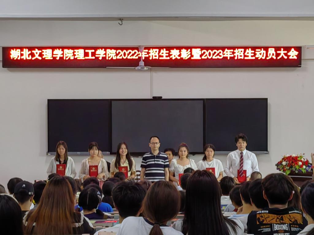 (招生就业处 张佩云)5月18日下午,招生就业处在1号教学楼105报告厅召开湖北文理学院理工学院2022年招生表彰暨2023年招生动员会。学校常务副院长耿帮才、招生就业处副处长程任泽及各地区招生负责人、各地区招生师生代表参会。会议由招生就业处李昊主持。