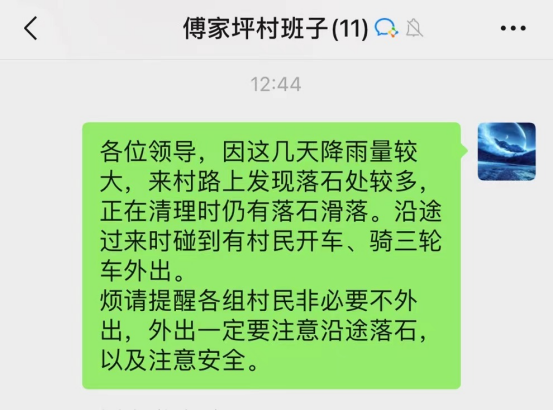 (通讯员 秦晓磊)8月25日至27日,襄阳市范围内暴雨连绵,我校驻村工作队时刻惦记着傅家坪村的村民,担心村民受灾、农作物被毁、道路不通畅等情况。在确保自身安全的情况下,趁雨势稍小后从市区赶往村里。沿途中积极清理落石,保证道路通畅并充分利用工作群发布安全提醒。