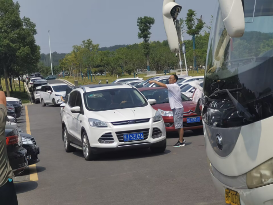 在向辉的带领下,路过此处的男教师们主动加入交通指挥行列,大约15分钟后,进出车辆已能有序出入,现场交通恢复正常。虽然汗流浃背,但看着车辆正常进出,大家都露出了轻松的笑容。