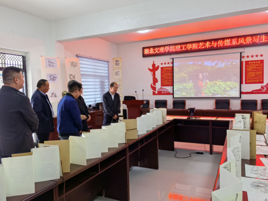 我校驻村第一书记秦晓磊讲解了傅家坪村兴建写生基地的整体规划、运营思路,并详细介绍了我校艺术与传媒系在写生基地开展的实践教学情况。