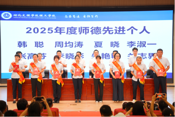 会上,校长助理朱雪林宣读了《湖北文理学院理工学院关于表彰2024年度先进个人的决定》《湖北文理学院理工学院关于表彰2025年师德先进个人的决定》;校领导为获奖教师颁发了荣誉证书,对他们为学校发展做出的贡献给予了充分肯定和高度赞扬。