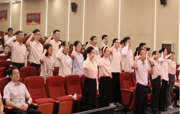 紧接着,在电信学院张佳教授的带领下,新进教师进行集体宣誓。“我志愿成为一名人民教师,忠诚党的教育事业,遵守教育法律法规,履行教书育人职责,引领学生健康成长……”铮铮誓言,表达了新进教师投身教育事业的坚定决心和对教育事业的无限热爱。