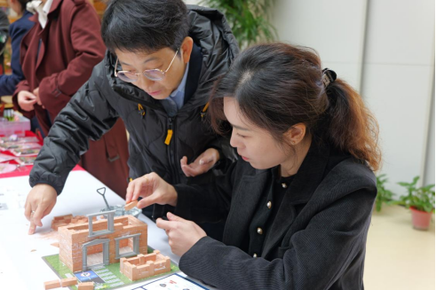 “匠心筑迹”工坊以榫卯搭接、砌筑体验、3D打印及襄阳建筑冰箱贴制作等特色活动,打造出互动性极强的传统工艺体验空间。现场不仅展示学生手工作品、制作影像与实物工具,更提供专业指导,让参与者在亲手创造中沉浸式感悟精益求精的工匠精神内涵,生动而富有吸引力。