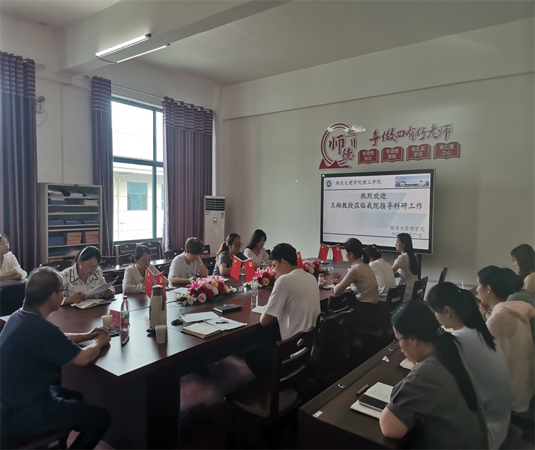 (经管学院 马比双)5月27日下午,经济与管理学院邀请湖北省人文社科重点研究基地鄂北区域发展研究中心主任王翔教授在4教309会议室举办了一场关于“湖北省教育厅人文社科项目申报”的科研讲座活动,学院副院长朱靖主持,全体专任教师参加。