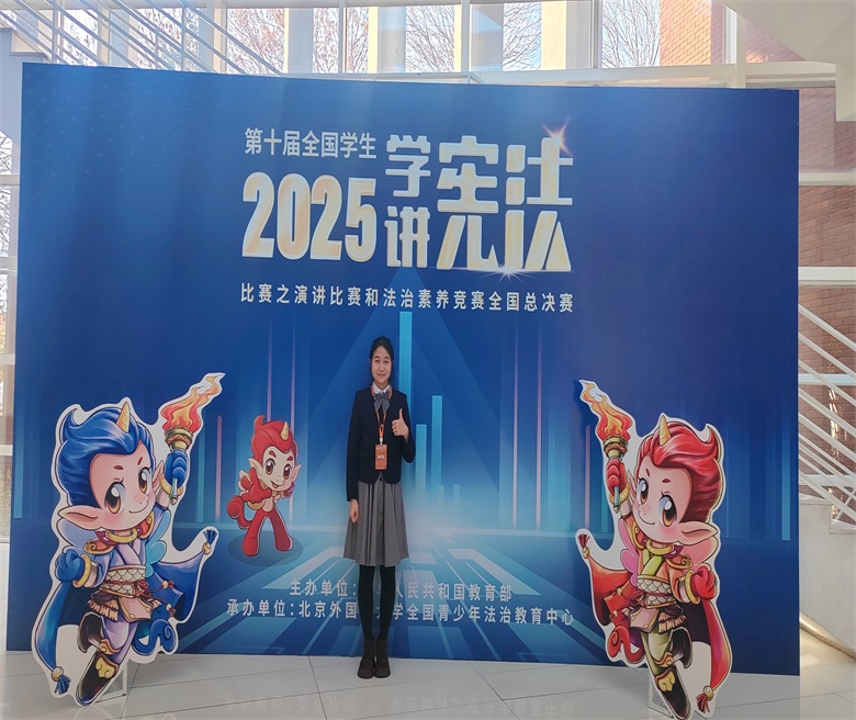 (经管学院 蒋隽雅)近日,由教育部主办的第十届全国学生学宪法讲宪法法治素养竞赛全国总决赛在京落下帷幕。作为教育系统规格最高、覆盖面最广的法治素养竞赛平台,此次赛事汇聚了全国各省、自治区、直辖市、特别行政区的顶尖学子。我校法学专业学生王萌,在指导教师蒋隽雅的指导下,从全省冠军一路过关斩将,最终斩获全国二等奖,创下我校在该赛事中的历史最佳成绩,为学校赢得了荣誉。