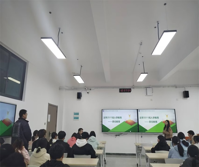 (经管学院 汪双楼 杨晋帆)为帮助新生缓解适应期焦虑,明晰成长方向,培养持久专注的奋斗品质,10月31日,法学2511班举办新生入学教育——责任教育主题分享会。全班同学共同观看董宇辉演讲《定力:决定你能走多远》,在真实故事中汲取力量,在深度交流中锚定初心,为大学生涯注入坚定前行的动力。