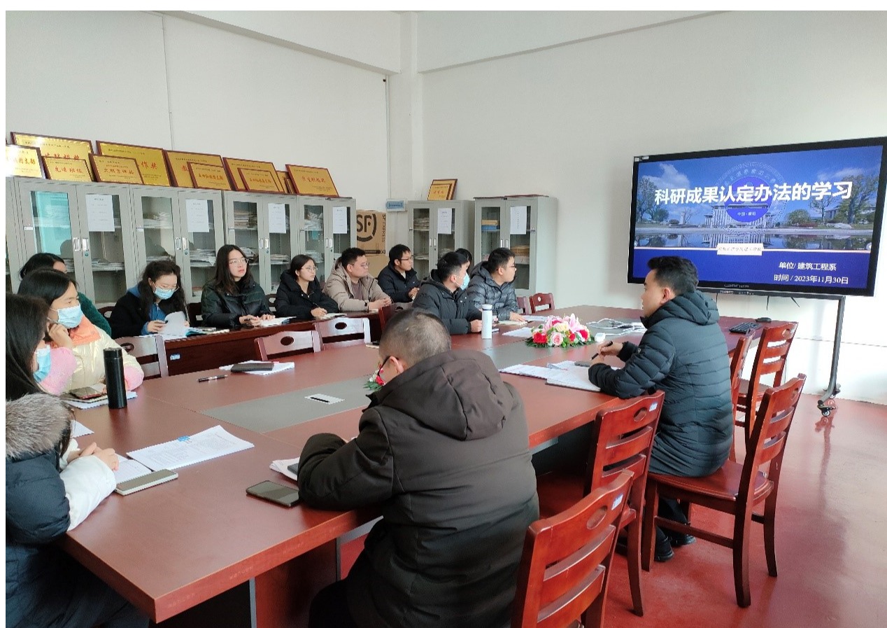 11月30日下午,建筑工程系在4教209组织开展《湖北文理学院理工学院科研成果认定办法》文件学习会,会议由建工系副主任刘琦良主持,系全体教师参加。