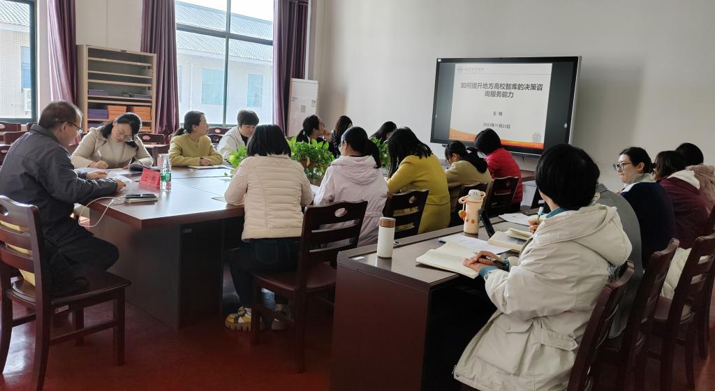 王翔教授结合自身在决策咨询研究方面的丰富经验和案例,从地方高校智库服务地方政府决策的重要意义、政策咨询研究的现实难点和高校智库服务地方政府决策的基本路径等方面进行了详细讲解。并以自己撰写的咨询报告被省级领导签批为例,深入浅出的分析了如何选题、如何定位、如何写作、如何创新、如何提交等。鼓励老师们跨专业合作,优势互补,开展交叉学科研究。