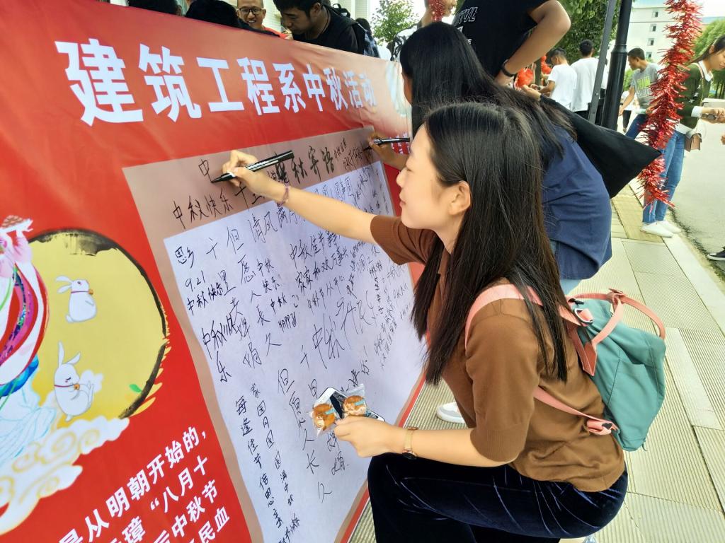 中秋佳节临近,21日下午,湖北文理学院理工学院举办主题活动,学生们猜灯谜吃月饼,写下祝福寄相思。