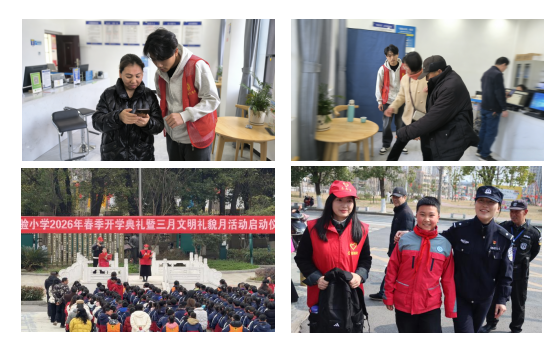 学院积极对接派出所、小学、社区、助残机构等多方单位,构建了“校地共建、资源共享、活动共办” 的志愿服务格局。在 “雷锋窗口・青春助力” 户籍大厅志愿服务活动中,志愿者们在近一个月的时间里,协助民警高效服务居民,成为雷锋月的特色长效项目;在 “护学岗,话雷锋” 活动中,志愿者们与肖湾派出所、襄州区实验小学联动,既守护了小学生安全,又传播了雷锋精神,推动了校地共建、警校共育走深走实。