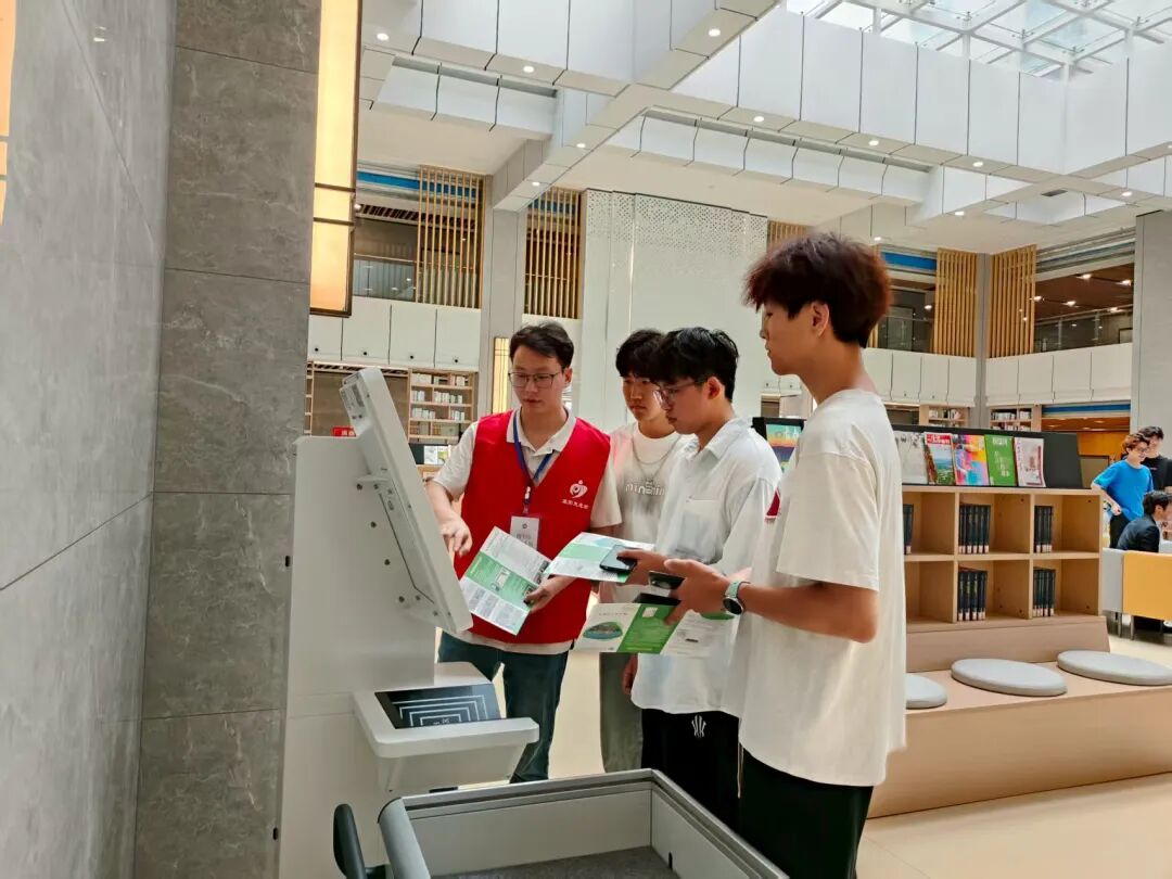 图书馆在馆内设置了迎新引导服务台,安排专人带领新生实地参观和体验图书馆空间。通过“现场讲解+实地指引”的方式,馆员与图书馆协会的同学们向新生及家长系统介绍了馆藏布局、借阅规则、电子资源检索及座位预约等服务,确保新生能清晰掌握使用图书馆的基础技能。