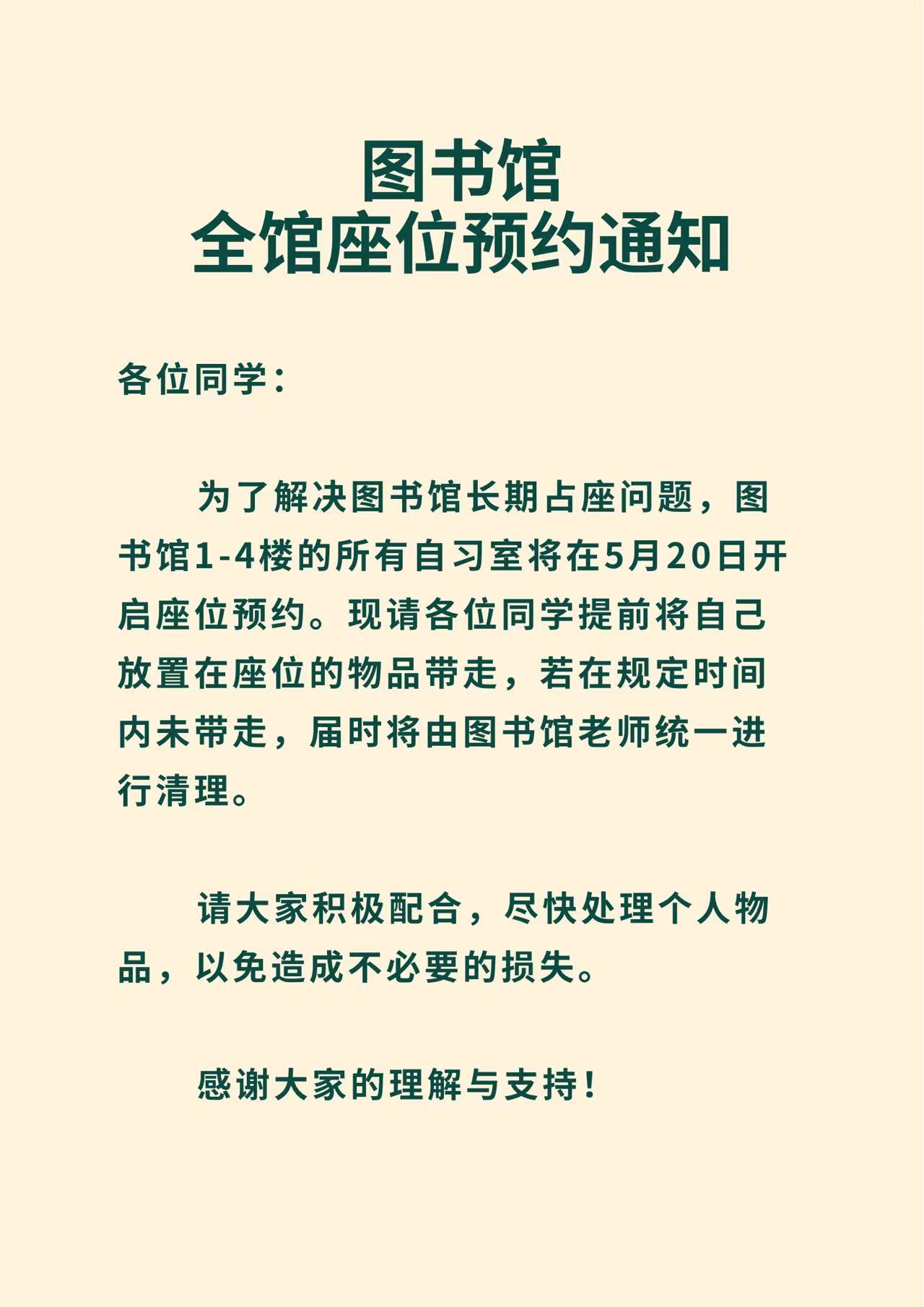 图书馆全馆座位预约通知