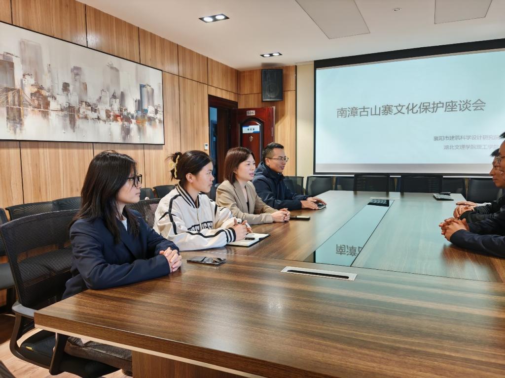 随后,考察团前往襄阳市建筑科学设计研究院进行调研交流。研究院负责人系统介绍了其在绿色建筑、城市规划、建筑文化遗产保护等领域的研究与应用进展,并展示了多个产学研合作成功案例。双方就未来可能开展的学生实地研学、竞赛项目孵化等内容交换意见,初步达成了南漳古山寨文化保护研究的合作意向,旨在推动文化保护与学科竞赛深度融合。