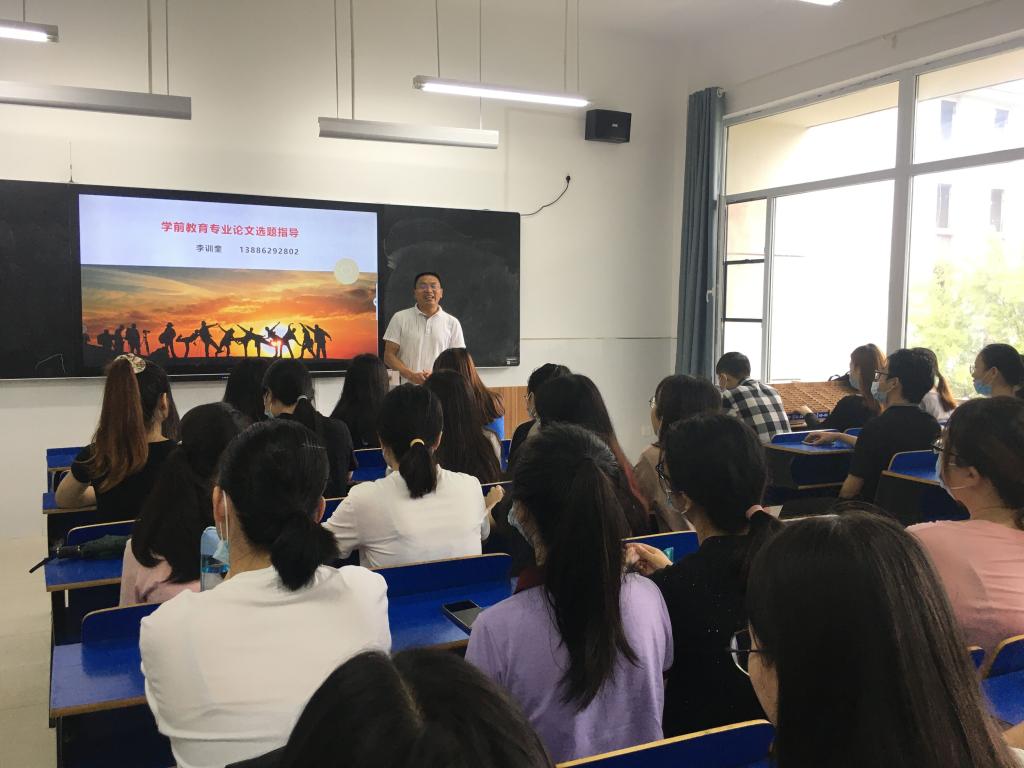 (外语系许俊格)为了更好地指导学前教育专业毕业论文的撰写,提升学生的毕业论文选题方向和科研意识。我系特邀特聘教授李训奎老师于2021年9月6日上午在J8-317,进行毕业论文指导系列讲座第一讲。学前专业负责人于楠老师担任主持。