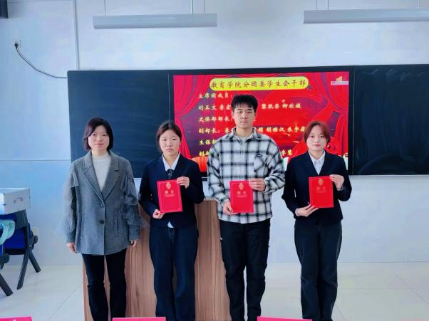 (教育学院 杨冉)使命在肩,奋勇向前。为了表彰先进,促进学生工作更上一层楼,教育学院第二届分团委学生会换届暨表彰大会于2025年10月26日中午分别在湖北文理学院理工学院东津校区12栋313和尹集校区8教417同时举行。教育学院院长王娟、副院长王文琦、教育学院分团委书记陈倩、教育学院学生党支部书记聂汉虹和教育学院全体辅导员出席大会