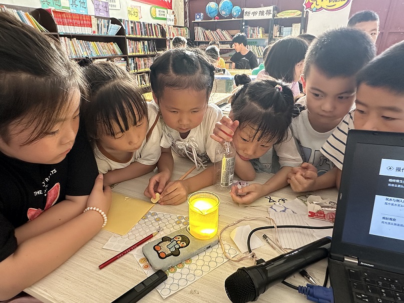 (教育学院陈倩 胡维汉)7月11日 为了破除"科学高深难懂"的刻板印象,培养科学思维,激发孩子探索热情,筑梦朱集服务队成员胡维汉为朱集图书室的孩子们开启了一场趣味横生的科普之旅,让抽象科学原理变得鲜活易懂。